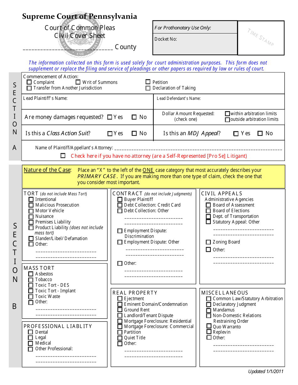 Pennsylvania Civil Cover Sheet Fill Out, Sign Online and Download PDF