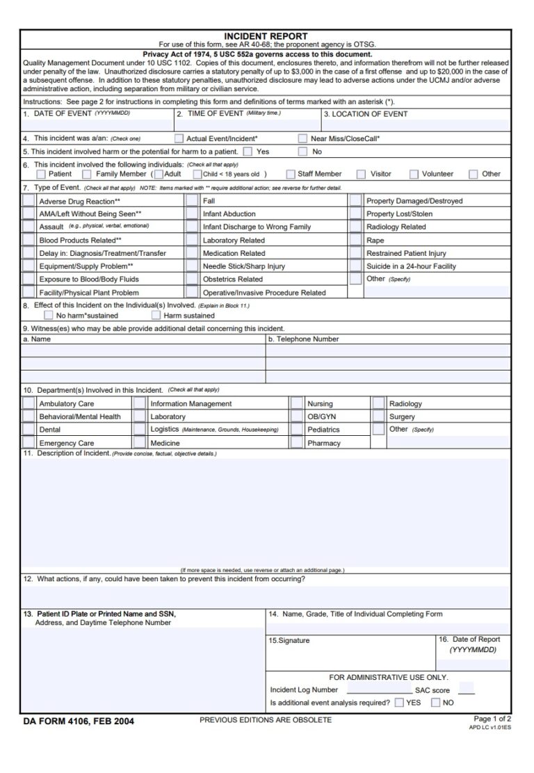 All incidents that cause injury, illness, or property damage of any kind must be reported. Incident reporting is an integral component of the continuous evaluation process. Record, verify, report, and process casualty information from unit level to cmaod; Sections i thru ix are filled out by the vehicle operator. This site is intended to provide users all necessary information and.
