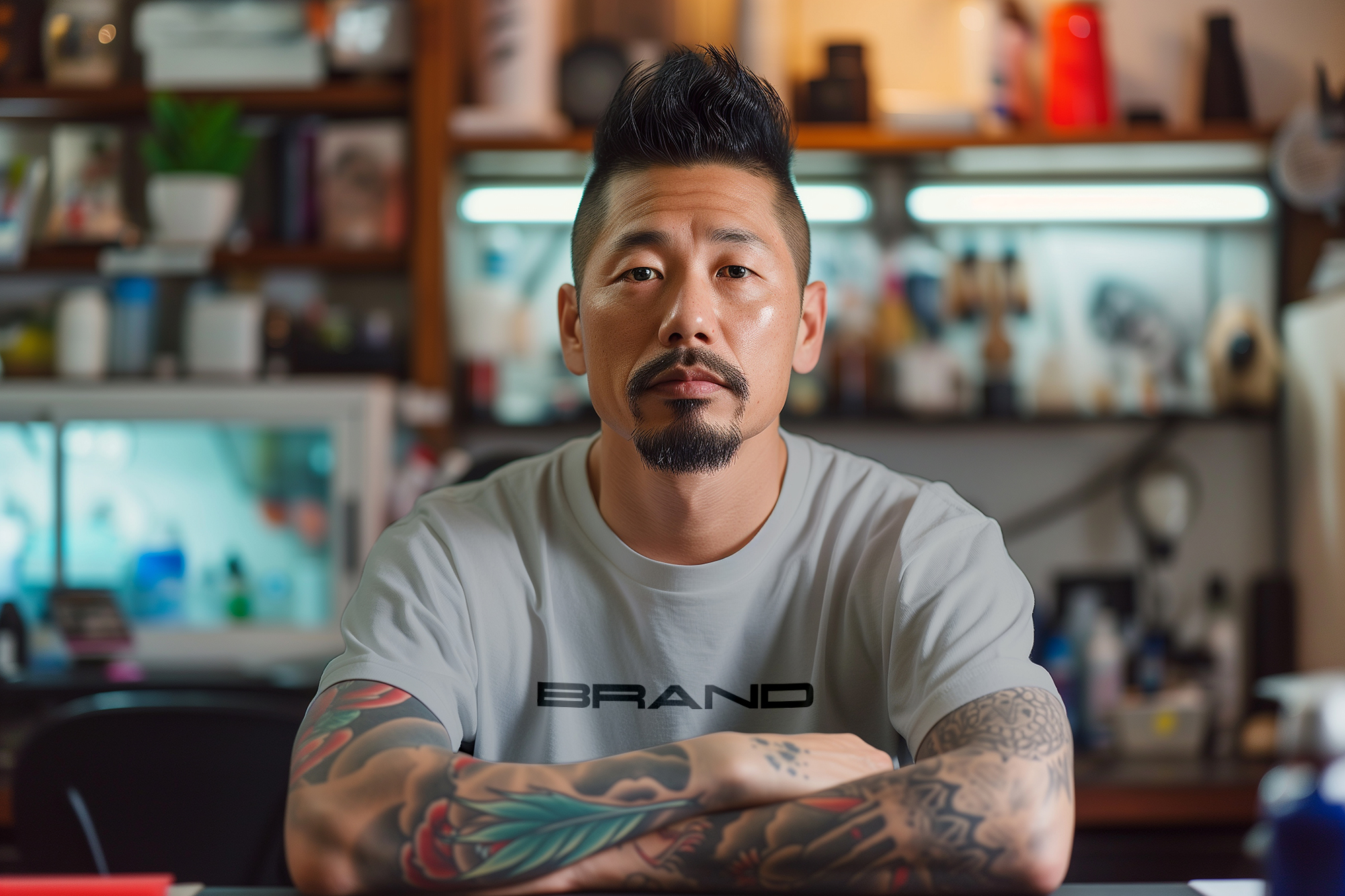 Asian Tattoo Artist Wearing TShirt Mockup Mockupdaddy