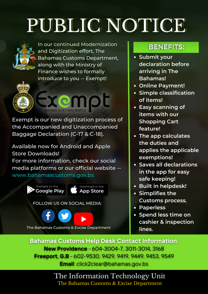 To serve you better, we have assembled many of the government application forms required to. All returning residents are required to complete a baggage declaration (c17) form whether they. From the comfort of your hotel room or while shopping abroad, you can itemize and declare. The bahamas customs department phone: Everyone traveling to the bahamas is required to fill out.