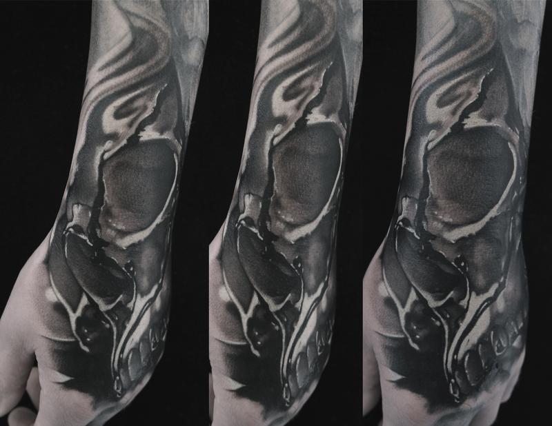 Tattoo black and grey skull hand kuarup tattoo Tattoo Black, Black And