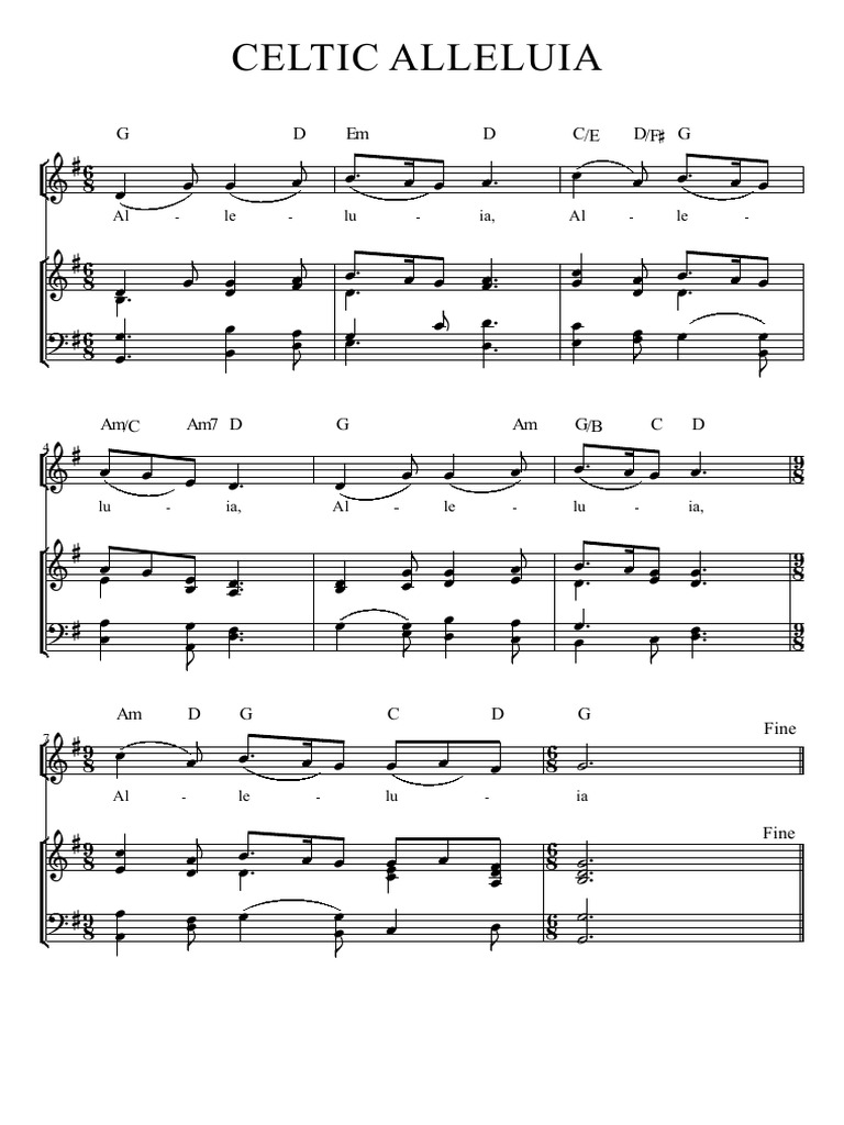 Celtic Alleluia Music Sheet - Browse our 2 arrangements of celtic alleluia. sheet music is available for voice, c. Share, download and print free sheet music of celtic alleluia christopher walker, fintan. Te deum (song of thanksgiving from the liturgy of the hours) father, we praise you as lord, all. Verse 1 father we praise you as lord, all of the earth.