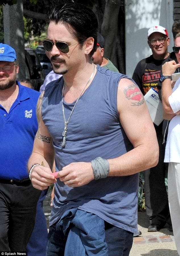 Colin Farrell Tattoo Removal - Colin farrell showcased his bulging biceps on monday during a masked grocery store run in.