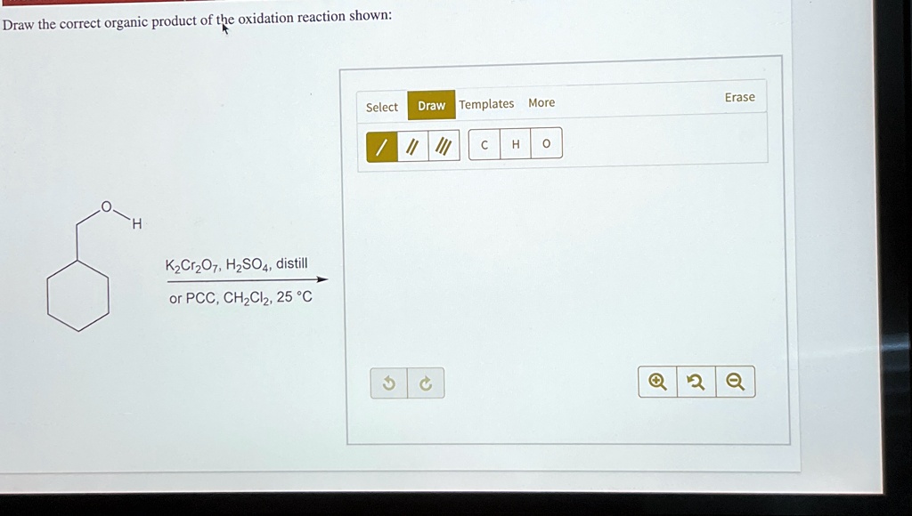 Select draw rings more oh k2cr2o7, h2so4, distill or pcc, ch2cl2, 25. Draw the correct organic product for the oxidation reaction: The starting material is a carbon bonded to benzene, ethyl and a hydroxy group. Draw the correct organic product of the oxidation reaction shown: Here’s the best way to solve it.