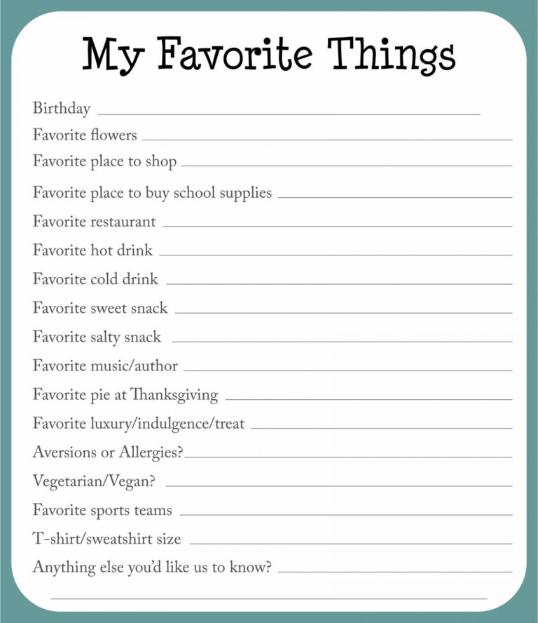 Free Printable Employee Favorite Things List FREE Printable HQ