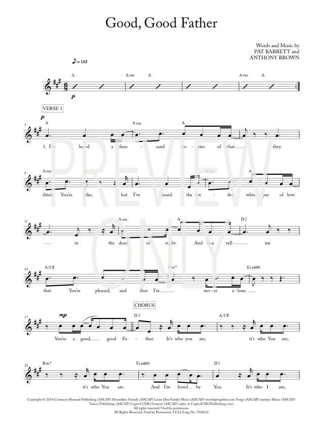Good Good Father Sheet Music PDF (Chris Tomlin) PraiseCharts