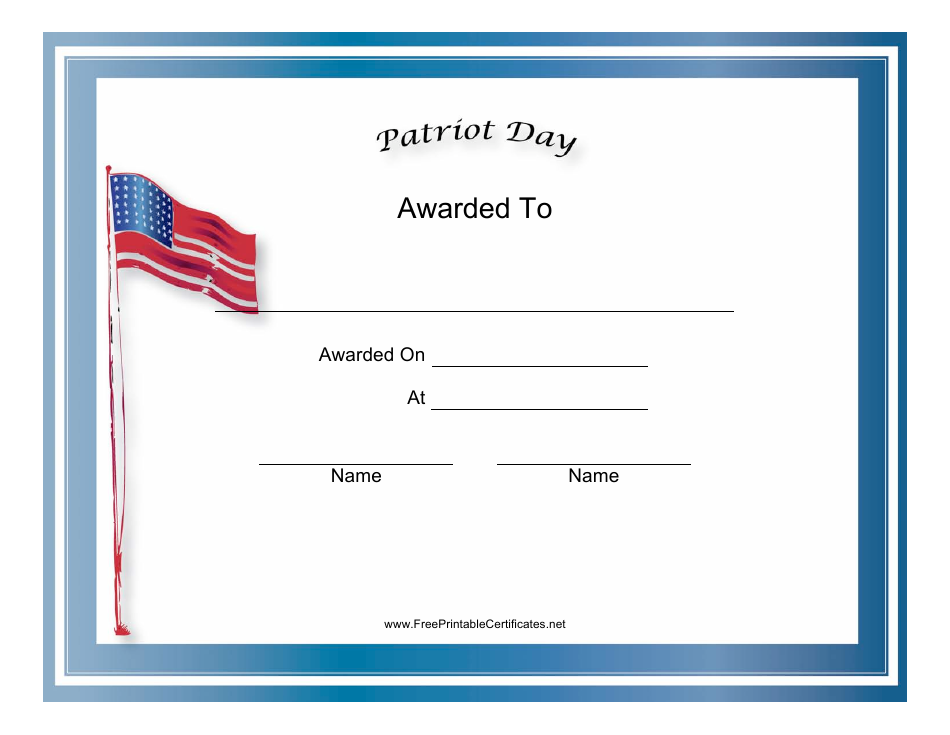 Patriot Day Holiday Certificate Template Download Printable PDF