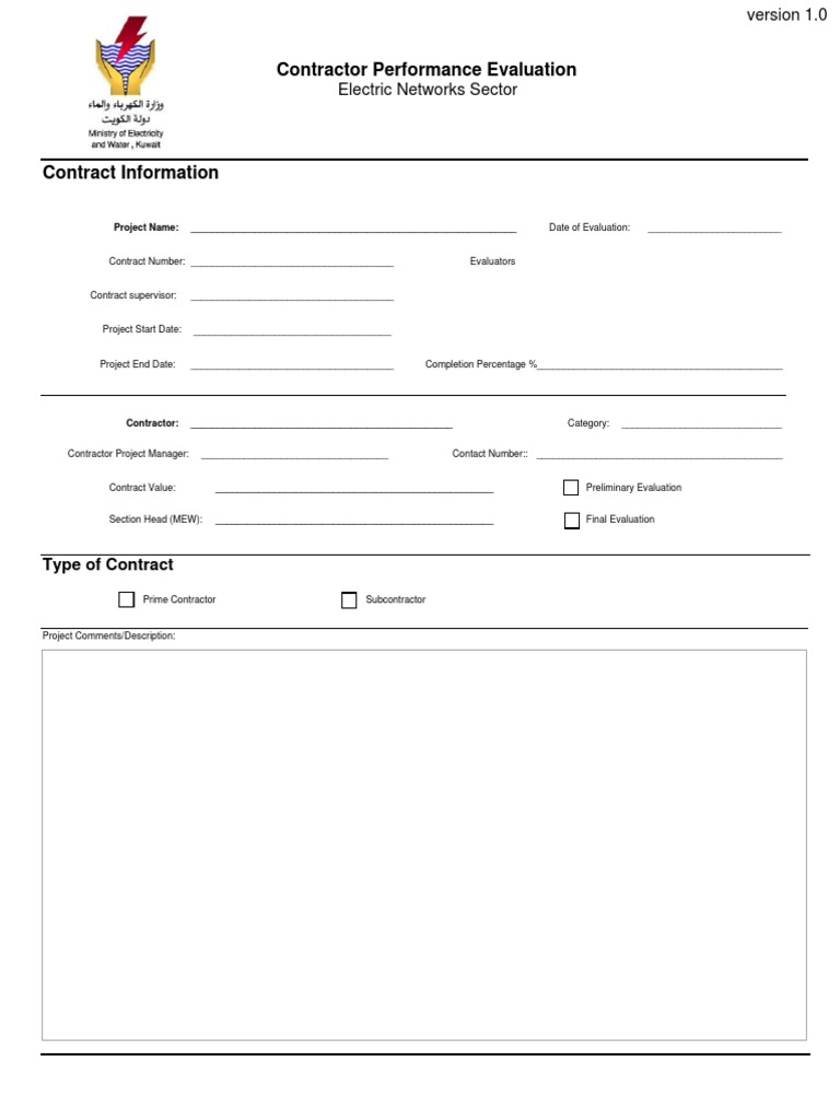 Contractor Performance Evaluation Form Templates