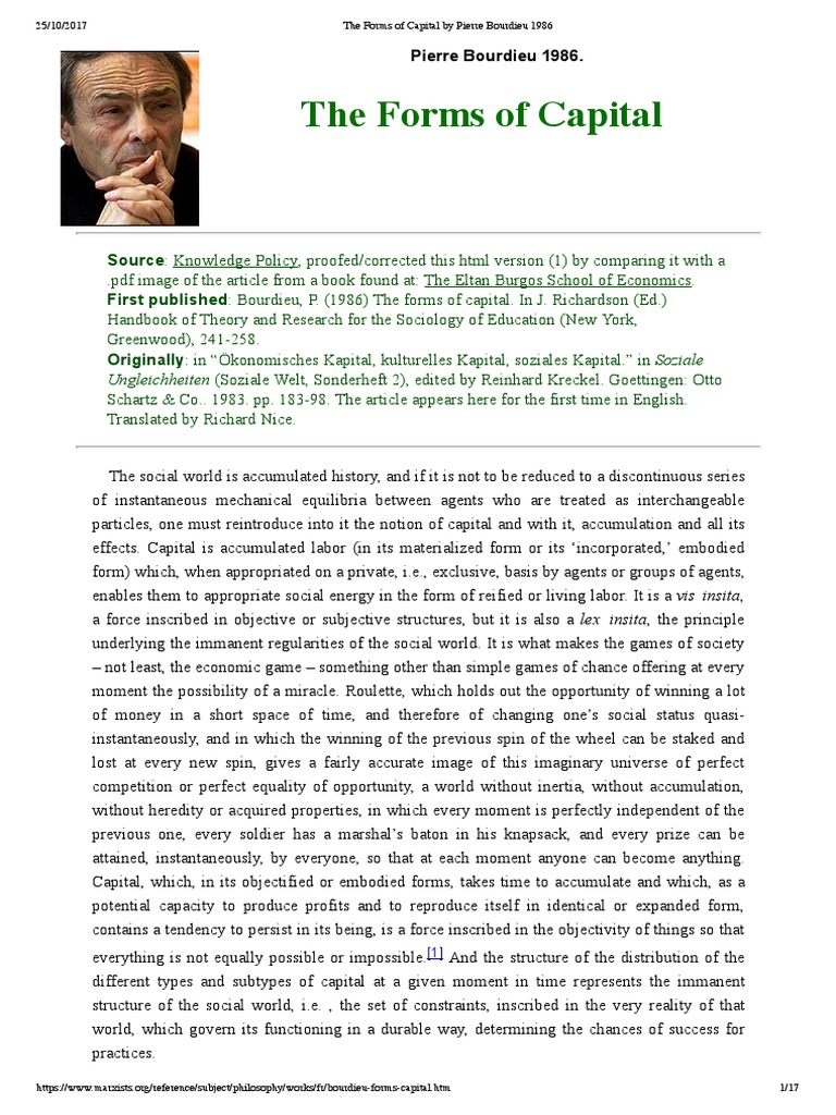 Bourdieu (1986) The Forms of Capital Cultural capital, Capitals