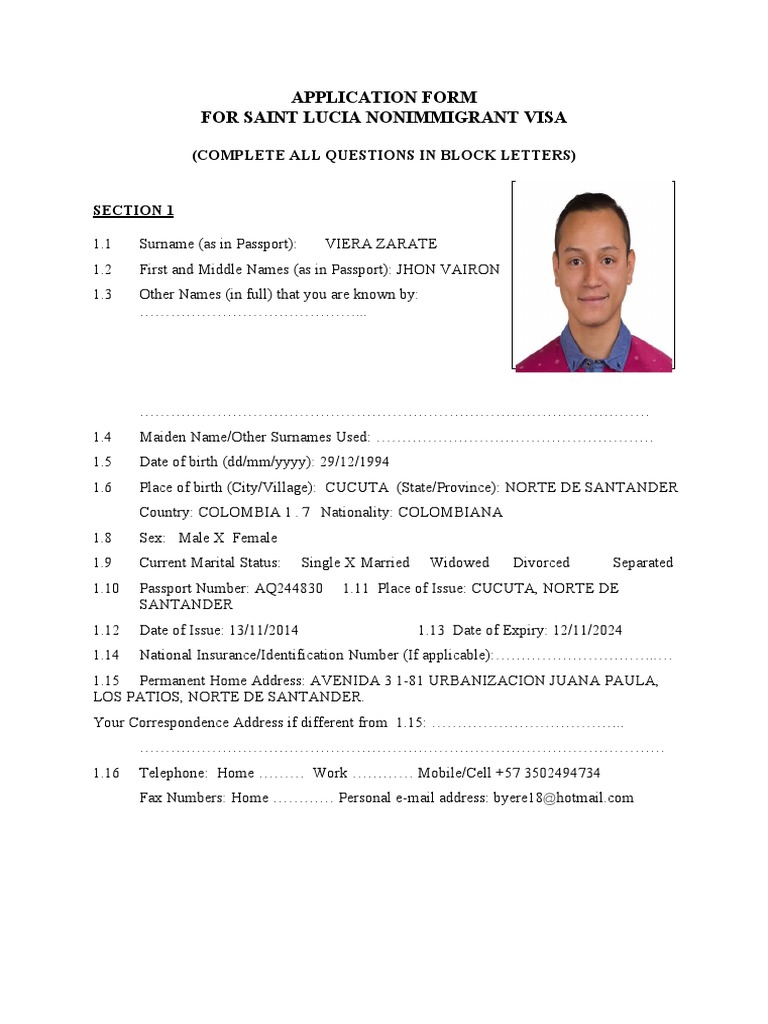 Application Form For Saint Lucia Nonimmigrant Visa All