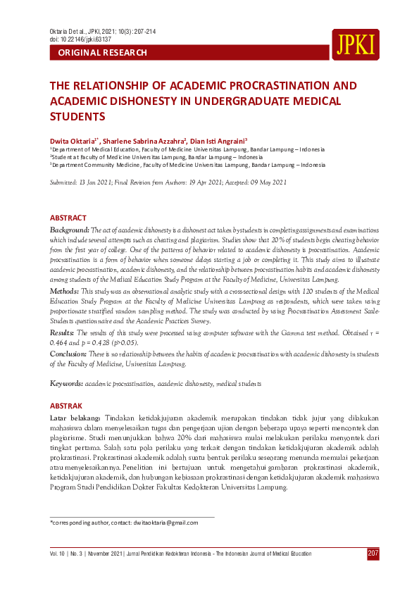(PDF) The Relationship of Academic Procrastination and Academic