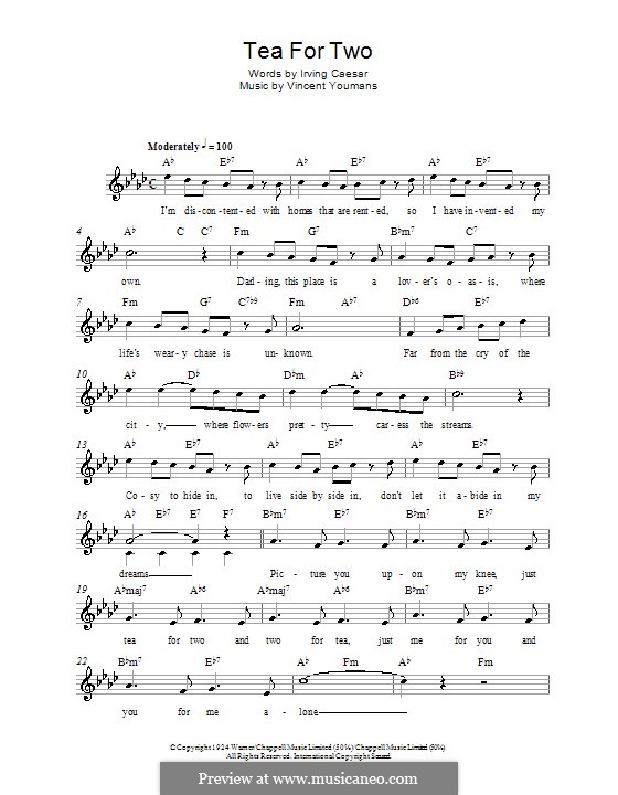 Mind for music free online sheet music, music transcriptions, arrangements and practice tools A leading broadway composer of his day, youmans collaborated with virtually all the. Jazz lead sheet find lead sheet and start play. Browse our 6 arrangements of tea for two. sheet music is available for piano, voice, c. For tea, just boy for you, a girl for me, oh can't you see how hap to take for all tel e phone, ar cake.