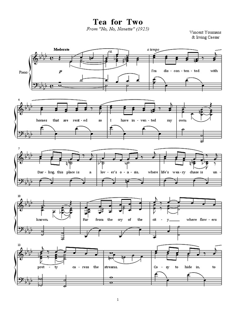 Download print and play youmans, vincent tea for two free sheet music for piano | 8notes.com A leading broadway composer of his day, youmans collaborated with virtually all the. Tea for two sheet music by art tatum arranged for piano. Browse our 6 arrangements of tea for two. sheet music is available for piano, voice, c.