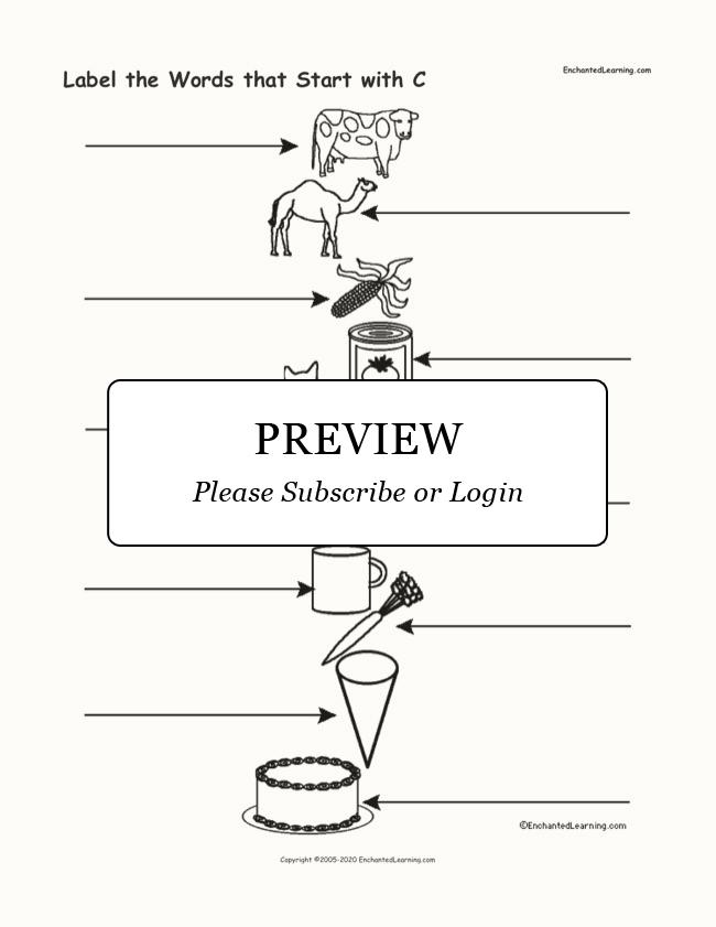 Letters of the Alphabet Printable Worksheets Words that Start with C