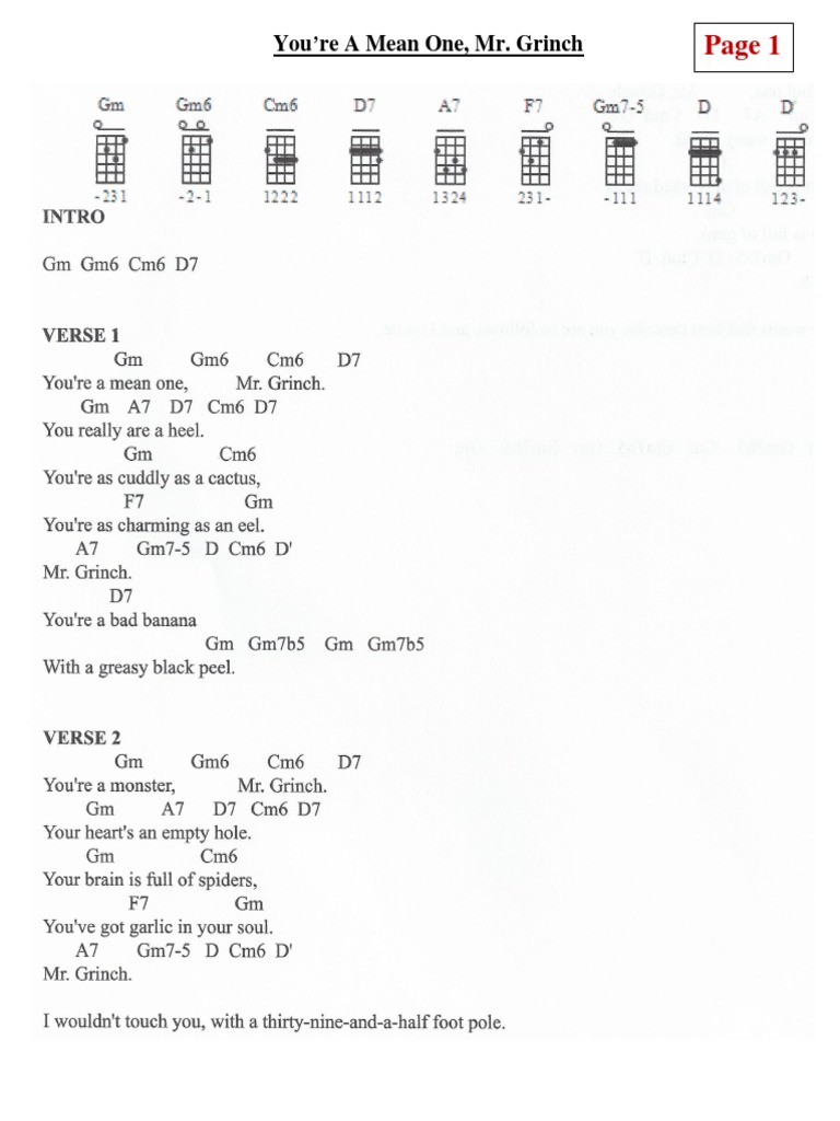 You're A Mean One, Mr. Grinch" Sheet Music for Easy Guitar Tab/Vocal